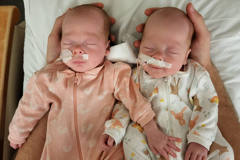 Fortunately, they were successful and twins Madilyn and Bella were born May 24, 2023, at just over 28 weeks, still about 10 weeks early. Since the twins were so small, weighing only two pounds 11 ounces and two pounds 10 ounces respectively, they needed the specialized care provided by our NICU medical team and spent 85 days there until they were strong enough to go home with their parents.